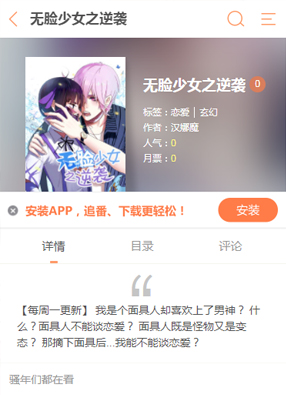 A-A+ 无脸少女之逆袭 2025-07-21 17:17 动画设计 2025-07-21 17:17 开始阅读 微信阅读 简介:漫画《无脸少女之逆袭》讲述了面具人还能谈恋爱嘛?因为长相不好看,所以时常带着面具,但是在其他人的眼中!面具人是怪物还是变态一直不受到其他人的喜爱,那么她是不是能够重新像正常人一样好好的谈恋爱呢?只要摘下面具之后,是不是就可以呢?尽情期待吧!看看无脸少女谈恋爱!